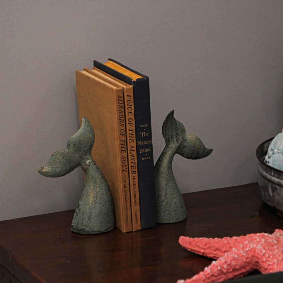 Coastal Accent - Embrace coastal style with these verdigris green bookends, ideal for beach houses or coastal-themed spaces. Whether in your bedroom, living room, or study, these whale tail bookends infuse a maritime atmosphere into your home, enhancing your decor with their marine-inspired elegance.