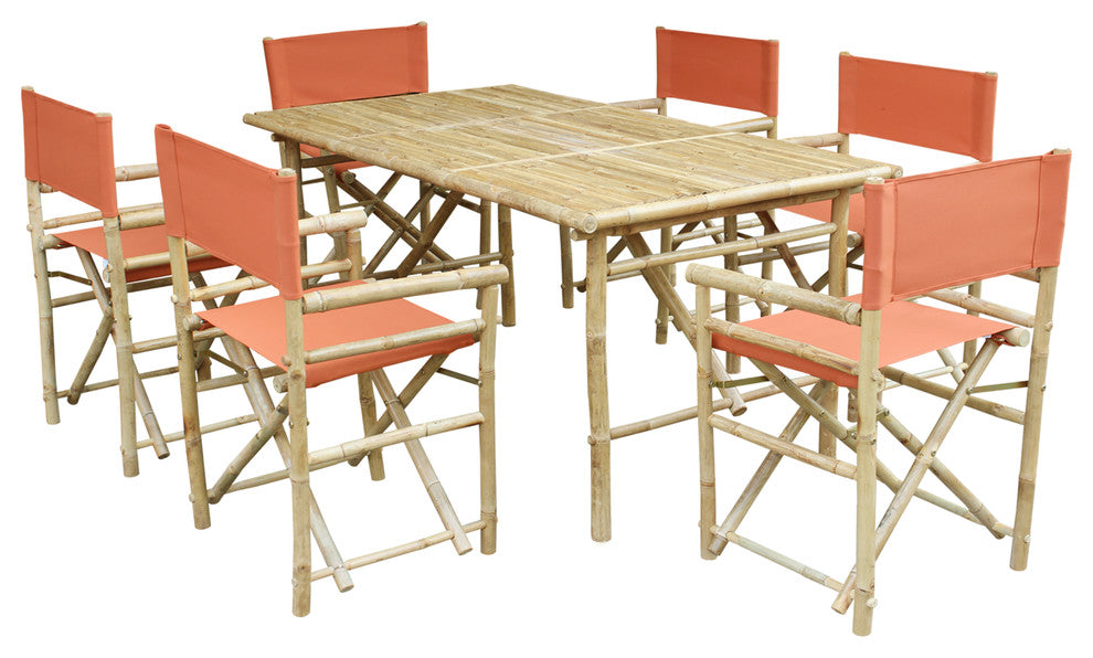 Set of Bamboo Rectangular Table, 6 Director Chair, Pottery