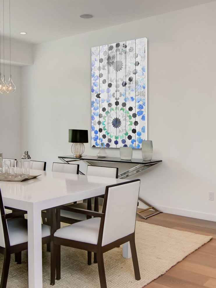 Striking and unique, the "Sevilla" Print on White Wood by Parvez Taj will bring your walls to life. Printed on white wood, this 30 inch wide by 60 inch tall contemporary artwork will make a statement in any living room, dining room, or bedroom.- Fine art UV ink print on white wood by Parvez Taj- wood pieces are hand-selected by Fine craftsmen for printing- Arrives ready to hang- Includes a certificate of authenticity- Artist signature on the front