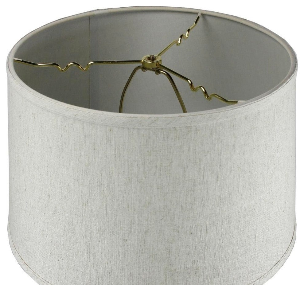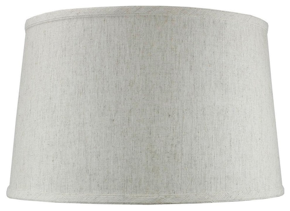 Home Concept Signature Shades feature the finest premium linen fabric. Durable Upholstery-Quality fabric means your new lampshade will last for decades. It wont get brittle from smoke or sunlight like less expensive fabrics. Heavy brass and steel frames means your shades can withstand abuse from kids and pets. It''s a difference you can feel when you lift it Hard Back Textured Oatmeal  with White Lining Drum Shape Lampshade 14 Top x 16 Bottom x 10 Slant Height Includes Double Notched Spider Fitter with 1/4 drop Top shelf hardback lampshade found in better lighting showrooms. Durable Hotel quality shade. Fits best with a 8 harp.