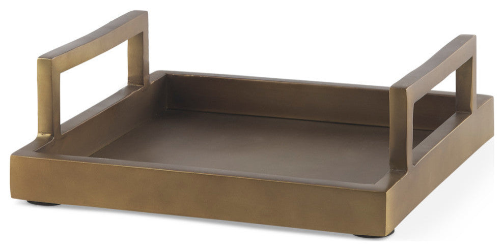 The Small Shay Aluminum Tray in a gold finish is a chic, modern tray to display decorative accents.