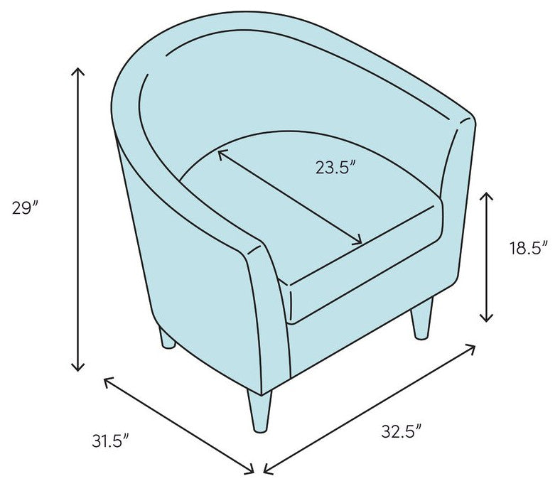Take a stroll to tranquil waves and ocean''s expanse with this Shell Barrel Chair. Scalloped seashell edges and vertical channel tufting create artful elegance, your living room, lounge room, entryway, bedroom, or other seating areas. Showcasing a modern barrel back design, it comes with a generously padded round seat for plush comfort. It is upholstered, soft, stain-resistant performance velvet upholstery covering dense foam padding and individually wrapped spring coil system. Four tapered and splayed brushed gold stainless steel dowel legs support the glamorous eye-catching elegance of this luxurious accent barrel chair.