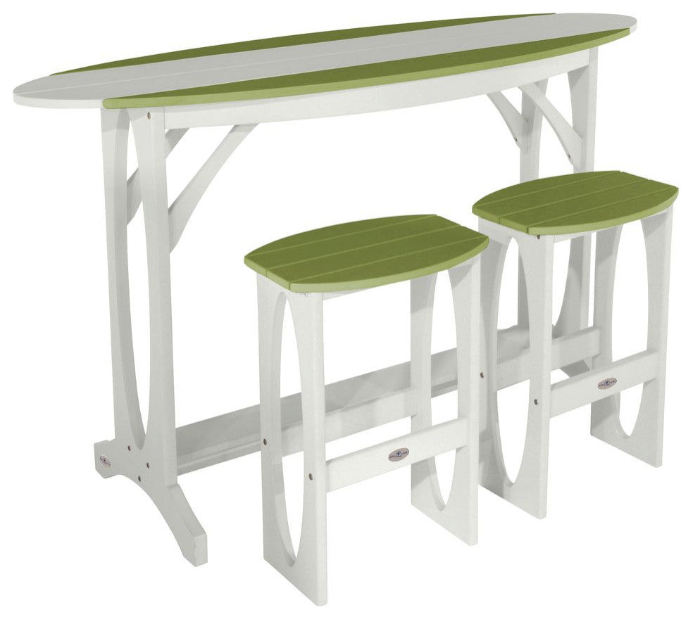 Shoreline 3-Piece Bar Height Balcony Set, White and Palm Green