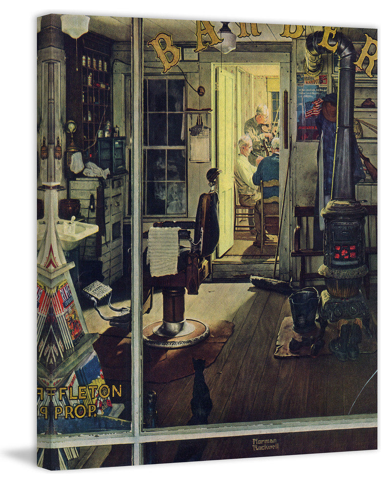 "Shuffleton''s Barbershop" Print on Canvas by Norman Rockwell features vivid tones and supple artistry. Printed on canvas, this 30 inch wide by 36 inch tall piece will be an exceptional addition to any room. - Fine art canvas print from the Marmont Hill Art Collective- Professionally hand stretched- Gallery wrapped in sustainable, non-warping wood- Arrives ready to hang- Made in the USA- Includes a certificate of authenticity- Norman Rockwell was one of America''s leading artists. He chose to tell the story of the American dream, the detail of a simpler time, painted with warmth and humor. He tapped into the nostalgia of the American people with paintings that were often idyllic and expressed enthusiasm for the ordinary.