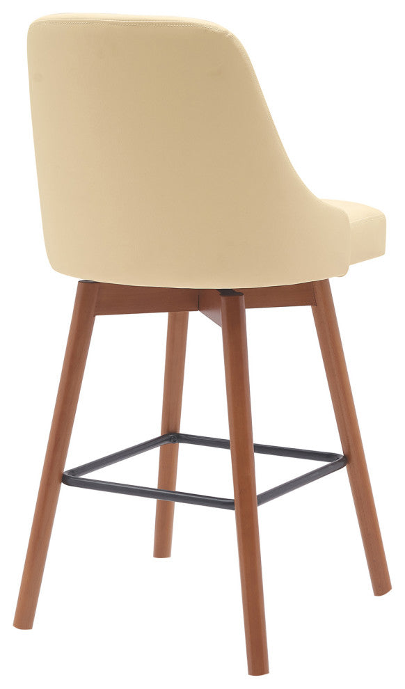 Sicily Swivel Walnut Wood Stool, Cream Faux Leather, 26"