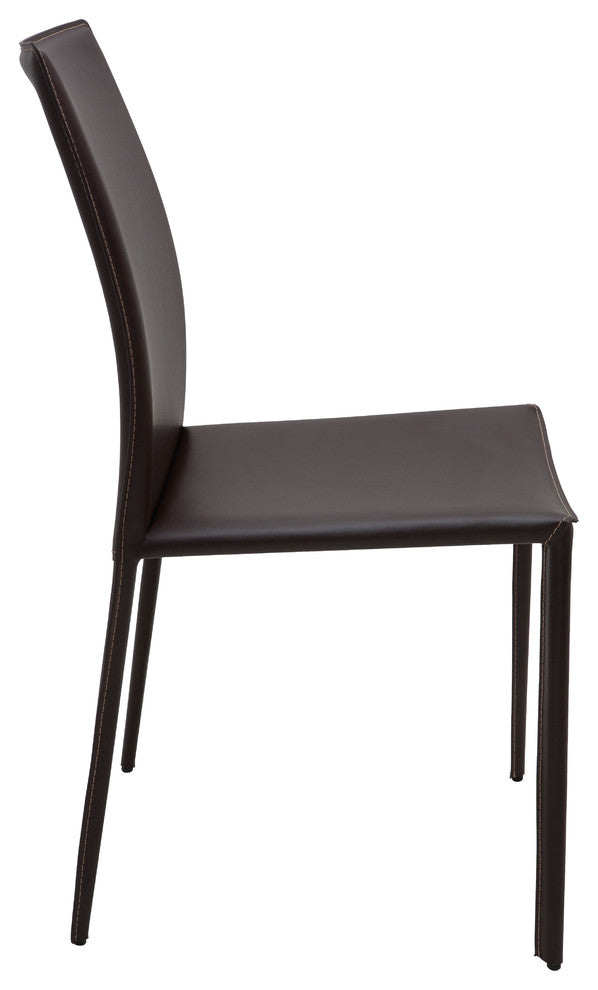 Bring a sense of contemporary style to any room in your house with the Sienna Dining Chair. It features internal steel frame and covered in leather fully, offering both comfort and style. Sienna Dining Chair is available in color of your choice - choose the best option to compliment your decor.Features: Bonded Leather upholstery on CFS foamSolid internal steel frameBeautifully contoured and very comfortable Dimensions: 18.1"W x 18.1"D x 35.4"H