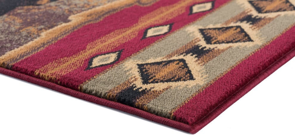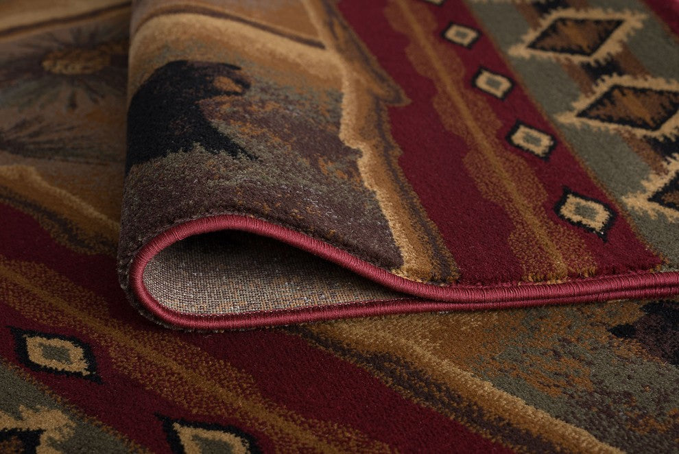 Sierra Bear Novelty Lodge Pattern Red Rectangle Area Rug, 4'x5'