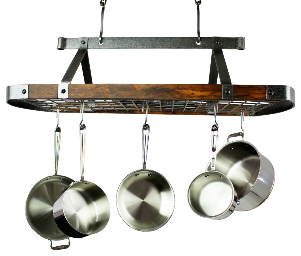 Handcrafted in the USA, this Enclume Signature Collection 45" Oval Ceiling Pot Rack is inspired by French tradition. Enclume brings innovation and design to our legendary Oval Ceiling rack creating a uniquely authentic, beautiful and functional cookware rack. Each Signature Series product integrates the finest materials including Enclumeï¿1⁄2s Legendary Hammered Steel. Enclume delivers professional grade, handcrafted and heirloom quality in the kitchen, home and hearth. Constructed of superior, hot rolled, high Carbon Steel, and Enclume''s Signature Hammered Steel finish with a protective clear coating providing durability and strength for lasting value and visual appeal. Beautiful and timeless! Assembly Instruction and Installation hardware are provided. Mounting directly into ceiling joists or beams is recommended. Consult your handyman or local hardware store for mounting to drywall or your specific ceiling type. Includes 18 Hooks; 12 Angled and 6 Straight Multi-Purpose Pot Hooks. Solid Steel Frame, Professional Grade. Forged by our Skilled Craftsmen in the Pacific Northwest, USA. Assembly Required. Hardware and Installation Instructions Included. Mounting directly into ceiling joists or beams is recommended. Consult your handyman or local hardware store for mounting to drywall or your specific ceiling type.