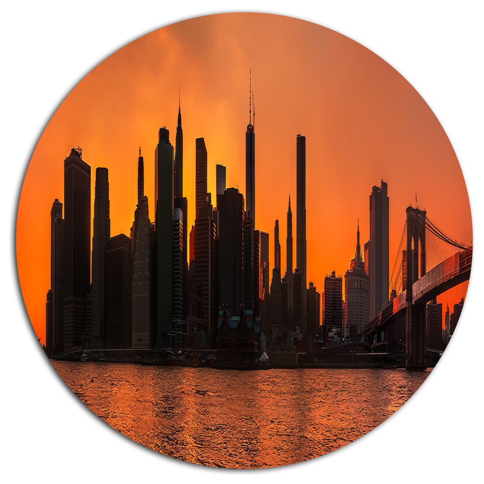 Silhouettes Of Manhattan Panorama, Cityscape Wall Round Wall Art, 36"