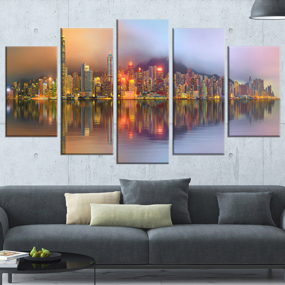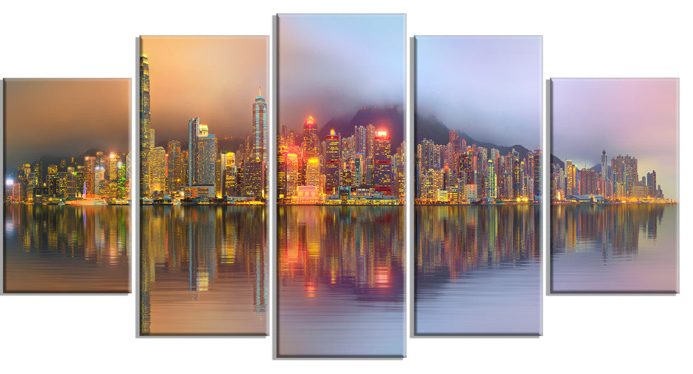 "Singapore Financial District Island" Canvas Print60"x32", 5-Panels