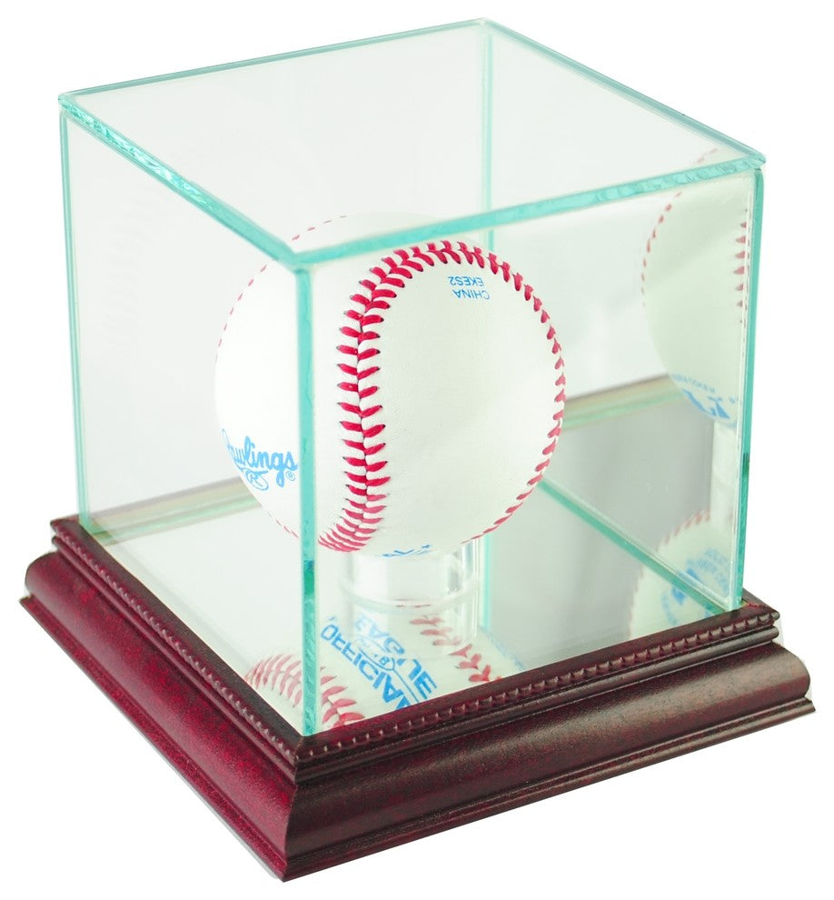 Protect your autographed baseball with our real glass Single Baseball Display Case. This display case is made with mirror on the bottom and back to give a full view of your ball. This case is UV protected and is supported by real wood moulding. Our adhesives contain no acids that may deteriorate signatures. This case also comes with a clear acrylic ring to support your ball.