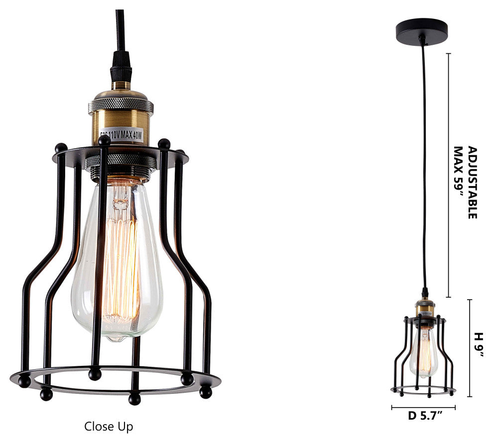 Add a touch of modern sophistication to your space with this sleek and stylish single pendant light! The black metal frame with brass hardware is both elegant and understated, while the adjustable cord link ensures a perfect fit for most ceiling heights. Perfect for use in bedrooms, kitchens, and hallways, this pendant light is a great way to add a touch of contemporary style to your home. Its simplicity and versatility make it a great choice for any room in your home. Bulb Type: E26 Bulb Wattage: 60W Number of bulbs: 1 Bulbs Included: NoCORD IS ADJUSTABLE IN HEIGHTPRODUCT WEIGHT: 0.3 LBSBOX WEIGHT: 0.5 LBSBOX SIZE: L13" W13" H30"