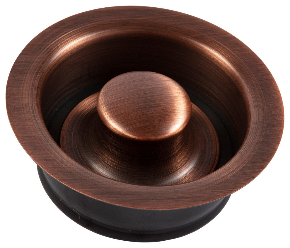Getting the perfect match between your sink and your accessories is important for a beautiful space. Sinkology drains are designed to match our unique sink materials and finishes. With an ultra-durable solid brass construction that is hand-finished, our drains are beautiful and functional. Our lifetime warranty guarantees the durability of this disposal flange for as long as you own it.Dimensions: 4.5" x 4.5" x 2.5"Designed to pair with InSinkErator garbage disposalsFits 3.5"� drain sizeEasy to installSolid brass constructionProtected by our lifetime warrantyAntique Copper is aged to a medium-to-light tone for that classic copper lookRecommended Products: Sinkology Copper Kitchen Sinks that require a disposal