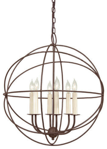 Six Light Globe Chandelier, Rust