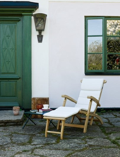 Take your summer chill to the next level with Steamer Deck Chair, inspired by the curved lines of a big cruise ship. The chair has an integrated footrest and can folded up and easily stored away when not in use. Crafted from high-quality teak wood in a clean and light expression, functionality and comfort is at the forefront of this Nordic Deck Chair.[Details]