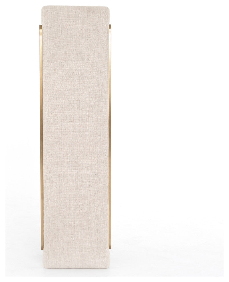 Dramatic bullnose edging meets elegant brass-finished steel framing for fresh, thoughtful balance, while performance-grade upholstered seating delivers a hint of glam and plenty of trend-forward texture. Versatile design makes this sled-style bench ideal in any space. Performance fabrics are specially created to withstand spills, stains, high traffic and wear, ensuring long-term comfort and unmatched durability.