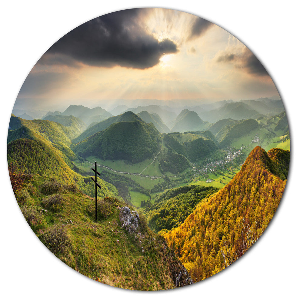 Slovakia Spring Forest Mountain, Landscape Art Round Metal Artwork, 38"