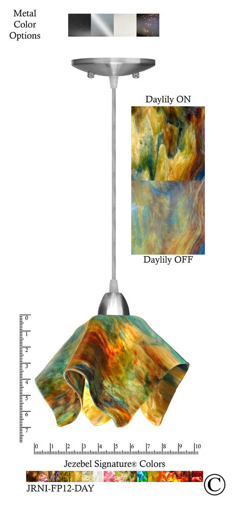 Small Jezebel Signature Flame Pendant, Daylily, Nickel Base