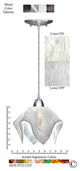 Jezebel Signature glass exudes romantic ambiance with color. Signature glasses have a rich waxy feel and stone-like texture and appearance. The Signature glasses are more luminous, richer in color and eliminate unsightly light bulb hot spots. Jezebel holds the patent on her technique. And, because the color is inside the glass and not painted on the surface, there is a remarkable 3-dimensional effect while light is diffused throughout the glass. The complex mixture of colors is difficult to attain in glass. Jezebel Signature glass surpasses any other for lighting, even that which Louis C. Tiffany made and became famous for from 1878-1938.Jezebel Signature Pendant Lights are made in the USA of handcrafted glass using a process patented to Jezebel. The remarkable three-dimensional effect can be ordered in a variety of glass colors. All Jezebel Signature products are UL certified and 120 Volts. This light can be used with a medium base bulb (not included): Incandescent, Fluorescent or LED. Naturally occurring air bubbles, inclusions, textures and slight color variations demonstrate that your Jezebel Signature Pendant Light is an original work of art. Your Jezebel Signature Pendant Light comes with our 90 day limited warranty. If your hardware or glass shade arrives defective in any way, please contact your retailer for claim instructions. Comes with 4.5 feet of adjustable cord, glass measurements are 5"H x 8.5"W x 8.5"D, the ceiling cap measurements are 1 5/8th" high, 5 1/8th" diameter.This light can be used with a medium base bulb (not included): Incandescent, Fluorescent or LED.The wiring is 120 volts.
