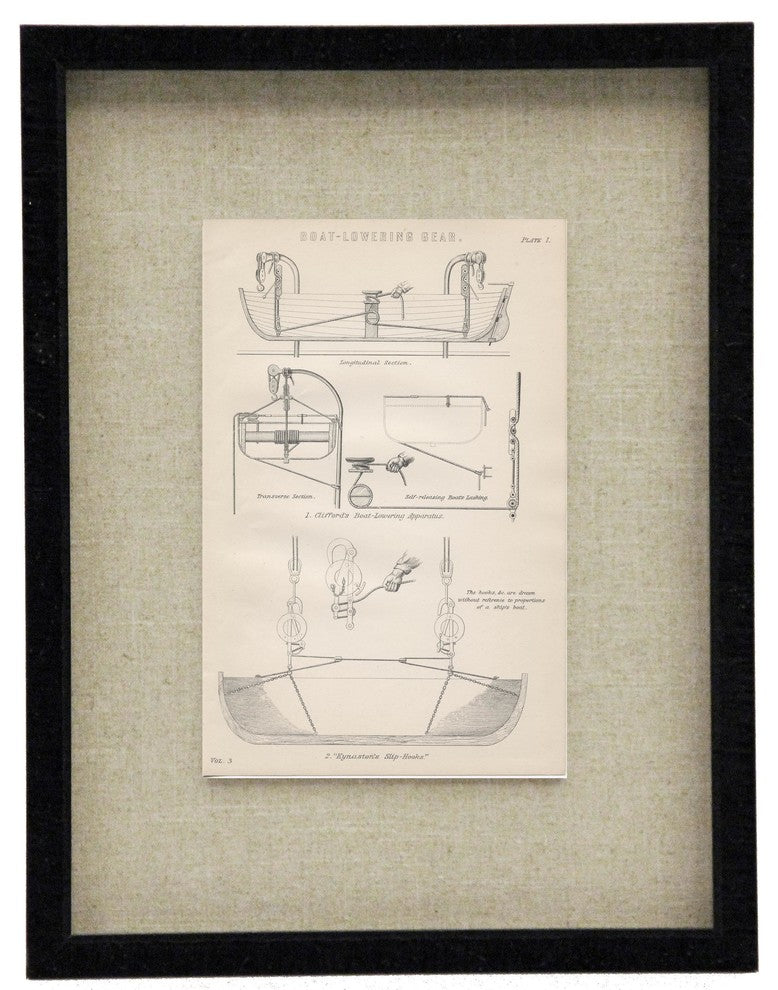 Small Mounted Boat Lowering Gear Plate 1, Black Shadowbox