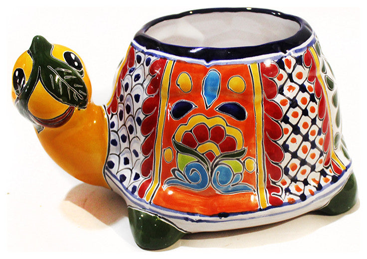 These large, handpainted turtle planters will be the conversation piece for either patio or garden. Comes with drainage.