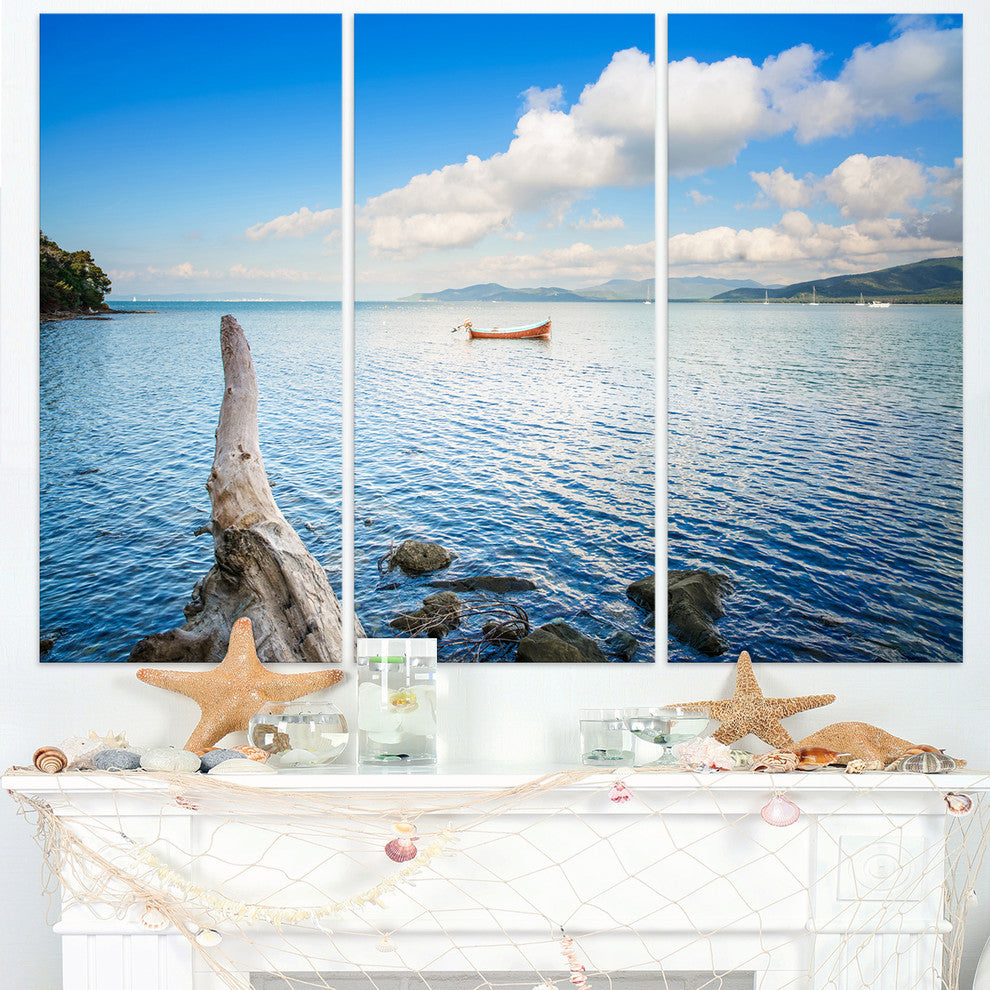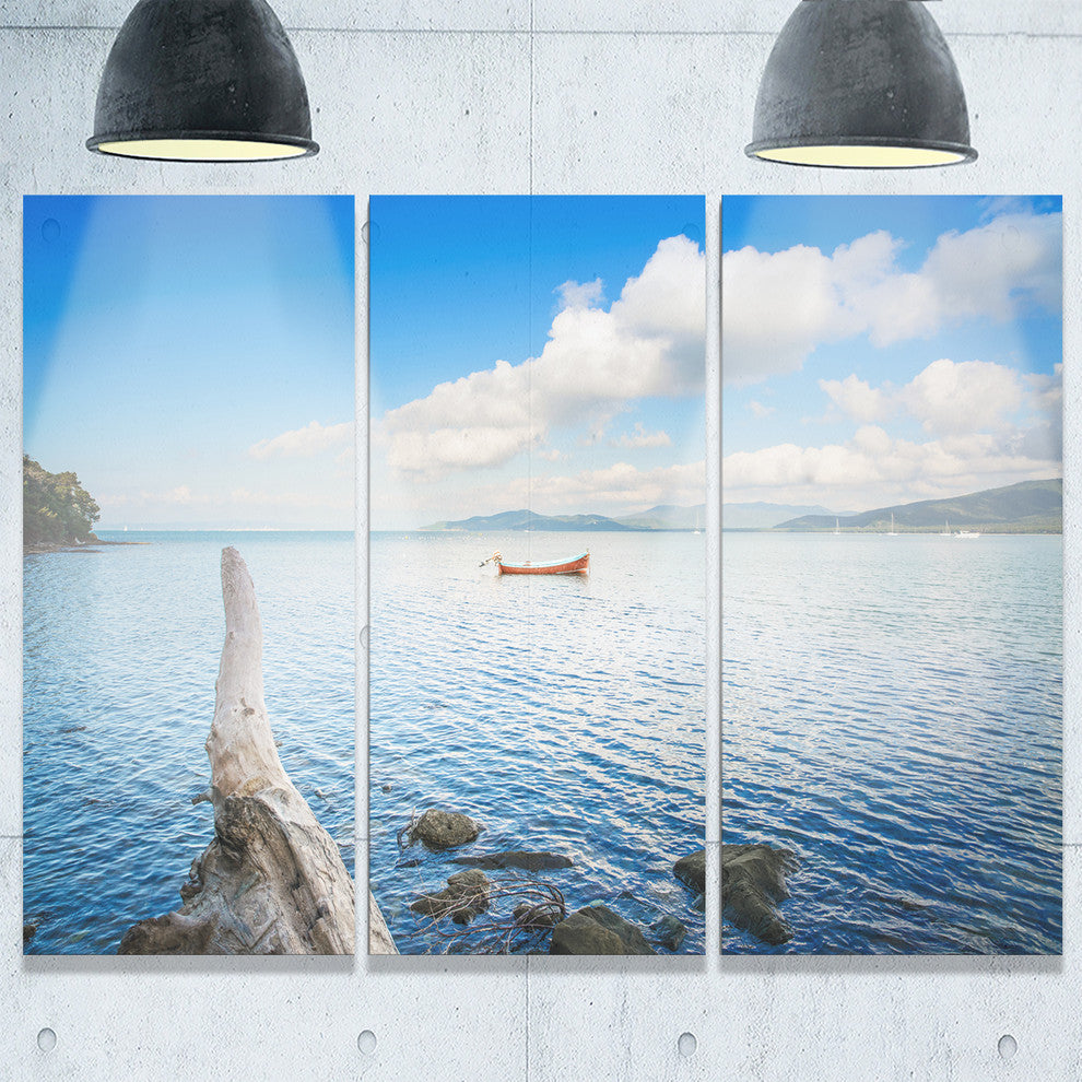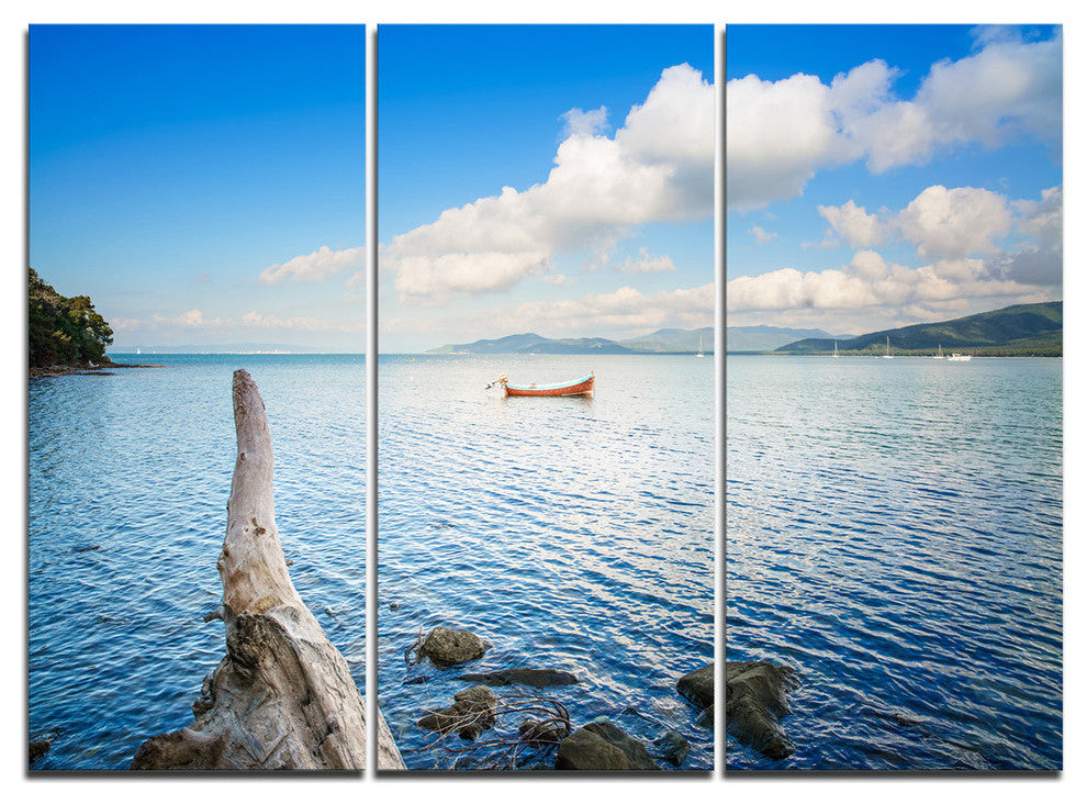 "Small Wooden Boat and Tree Trunk" Metal Wall Art, 3 Panels, 36"x28"