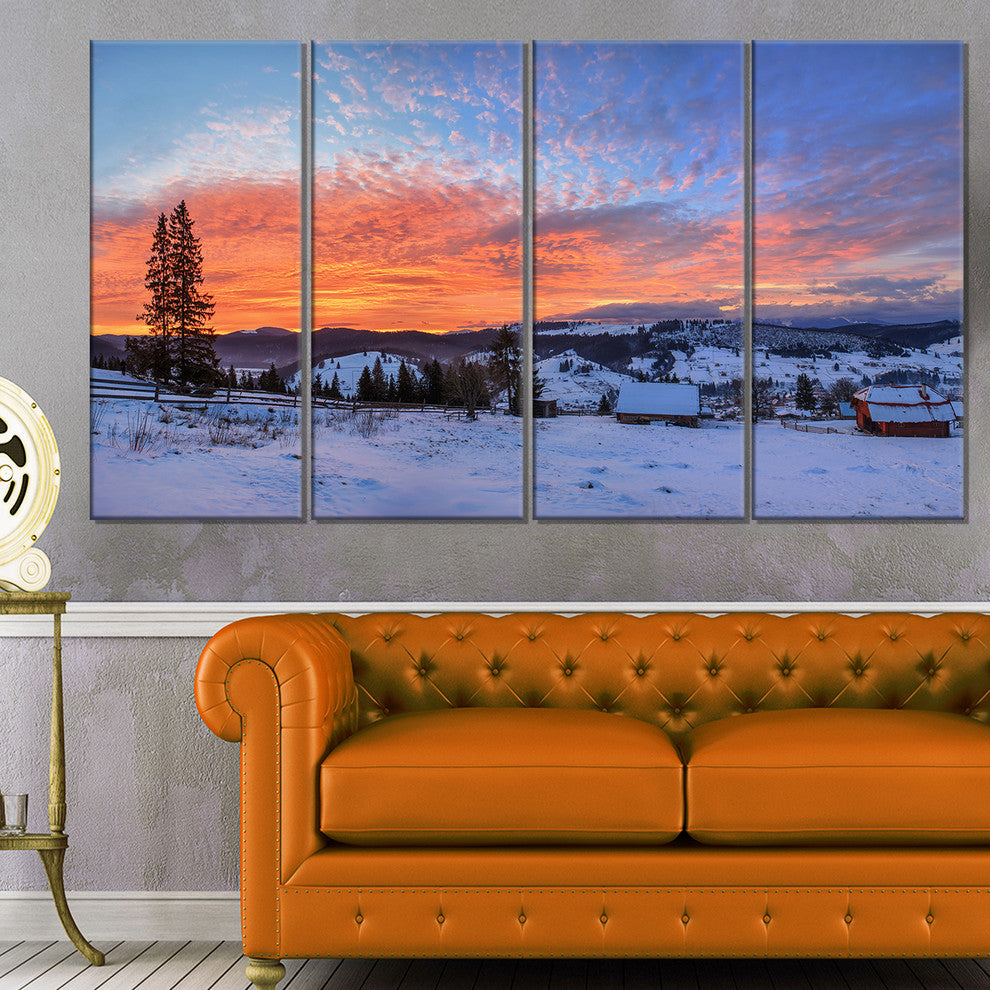 "Snowy Colorful Dawn in Mountains" Landscape Wall Wall Art, 4 Panels, 48"x28"