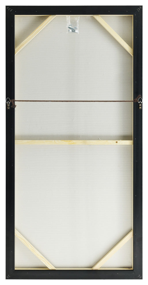 Artist Martin Edwards loves the texture and feel of paint and the sensuous beauty of color and tries to make the most of these two elements in his original works of art. This specific style shouts movement and mood as it moves across the canvas and the color only serves to intensify the emotion displayed. This piece uses subtle variations in technique and metallic color combinations to display a three-dimensional, hand painted, piece of art that displays an abstract of blue and white that has been embellished with gold leaf and silver glitter and encased in strong black frame. Comes pre-installed with D-rings and rope which makes it simple to display on wall, depending on your reference. Each panel includes mounting nails and hooks for ease of installation.