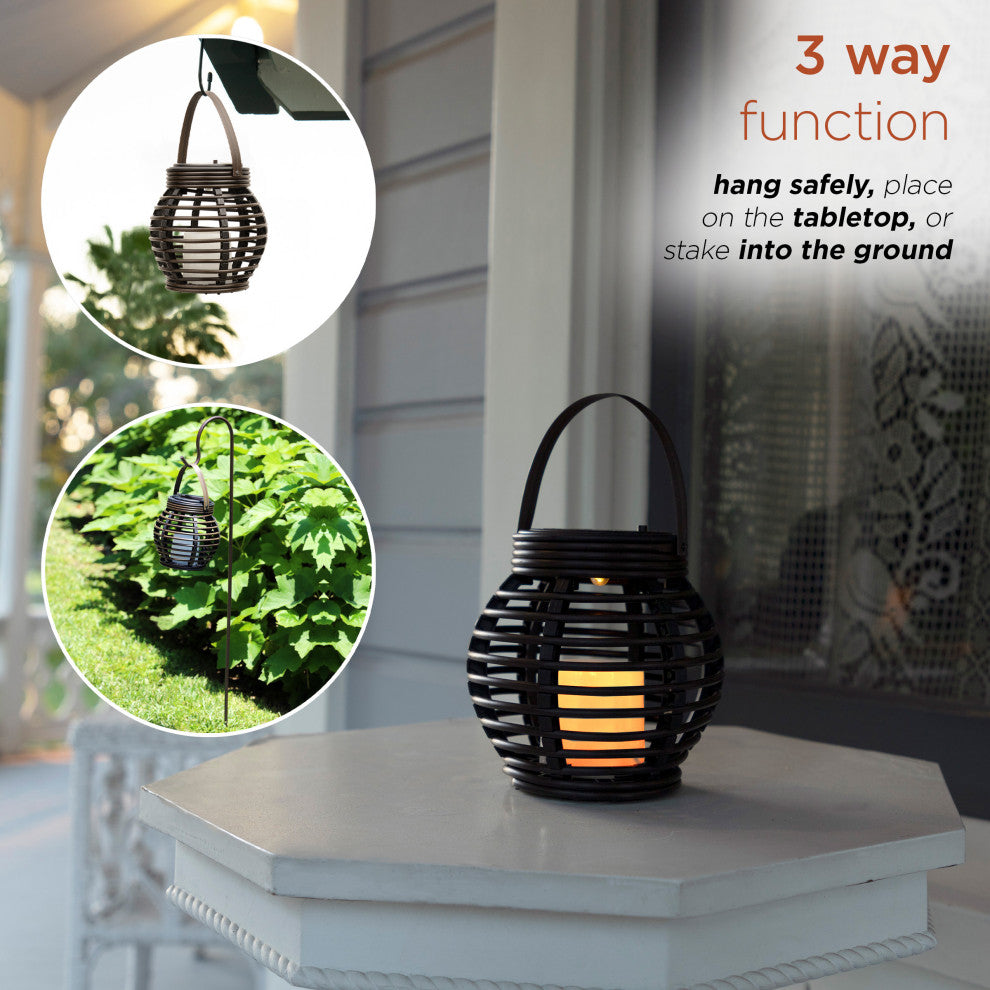 This elegant and unassuming solar lantern provides a gentle glow to any outdoor space. Illuminated by a flickering LED light, it will create a pleasant ambiance.