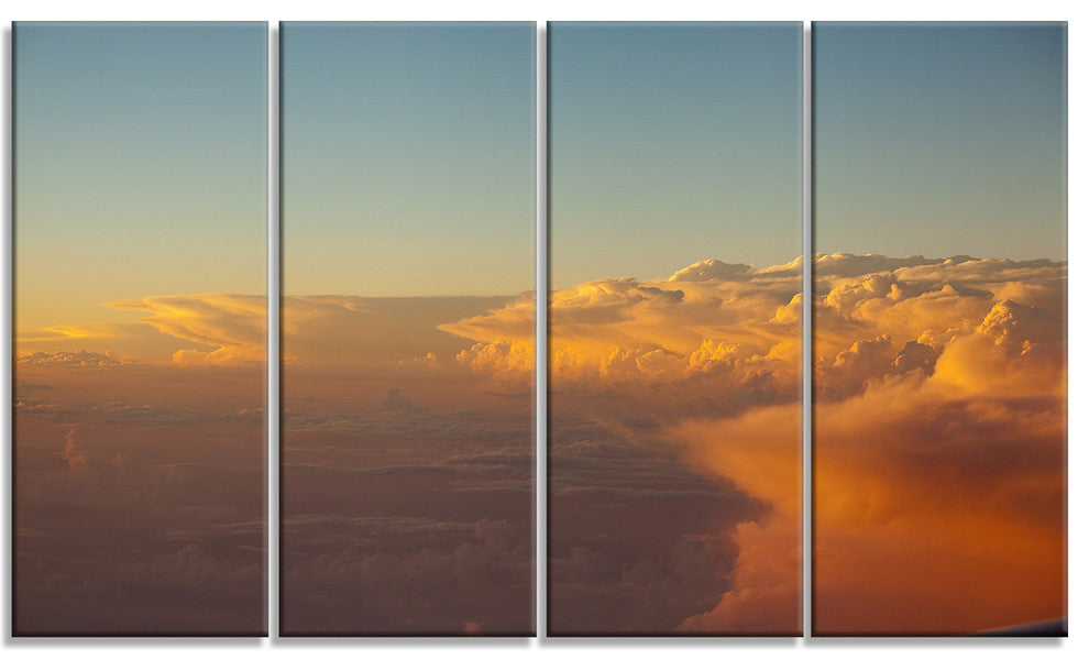 "Solotful Sunset in Sky Cloudscape" Seascape Art Canvas, 4 Panels, 48"x28"