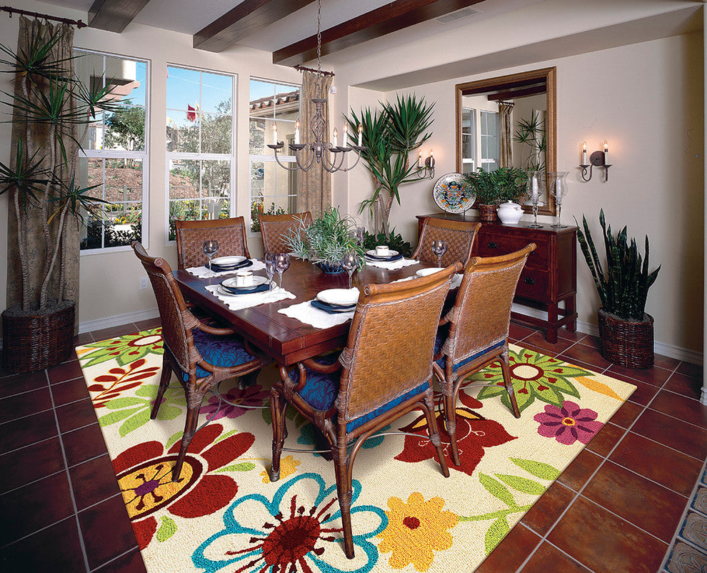 Sonesta 2012 Ivory Retro Floral 2''x7''6" Runner. Hand-Hooked of 100% Polyester with Cotton Backing. Made in China. Vacuum regularly & spot clean stains. Professional cleaning recommended periodically.