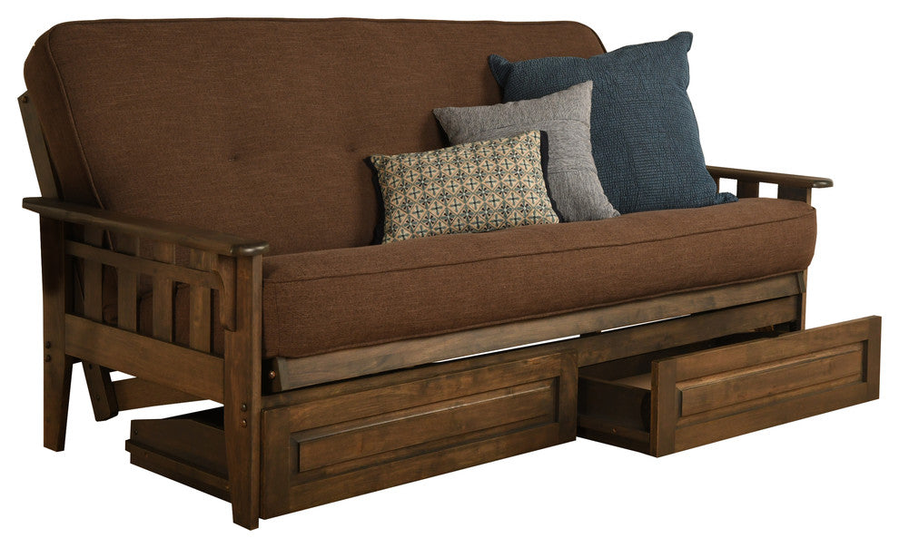 Sonora Frame, Rustic Walnut Finish, Storage Drawers and Mattress, Linen Cocoa