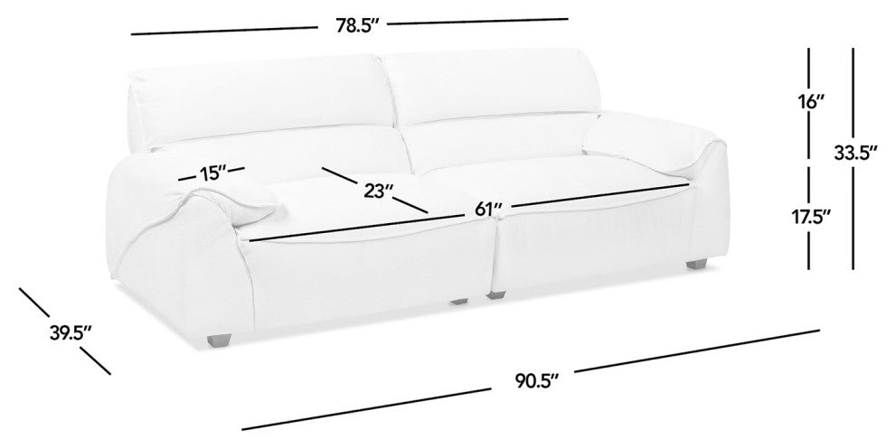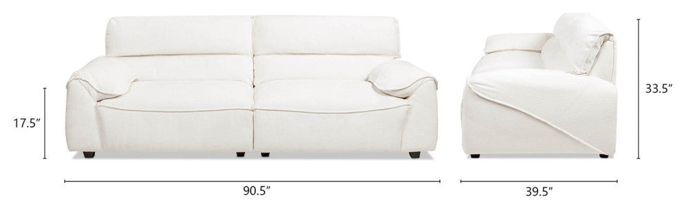 The Sorrento 90.5" Modular 2-Piece Sofa by Jennifer Taylor Home is crafted to provide elegance and exceptional comfort. With its high seat back and pillow arms, this sofa is perfect for lounging and leaning back after a long day. The Creme Off-White Chenille fabric enhances its luxurious feel, while the sleek Ebony Black Legs deliver a modern, European Italian style. Its tight back design adds structure and sophistication to any space, making it ideal for relaxation and conversation. Whether in a living room or a cozy reading nook, this sofa is designed to impress and support.Features:- High seat back ideal for lounging and leaning back comfortably- Luxurious Creme Off-White Chenille fabric offers a soft, inviting texture- Elegant and modern European Italian style with a refined aesthetic- Pillow arms enhance comfort for added relaxation- Tight back design ensures a clean, structured appearance- Durable construction with Ebony Black Legs provides a striking contrast- Modern, European, Italian stylesSpecifications:- Dimensions: 90.5"W X 39.5"D X 33.5"H- Seat Dimensions: 61"W X 23"D X 17.5"H- Weight: 148LBS- Weight Capacity: 600 LBS- Number of Shipping Boxes: 2- No assembly is required- Care Instructions: Cleaning Code S: Spot clean with a non-water based solvent