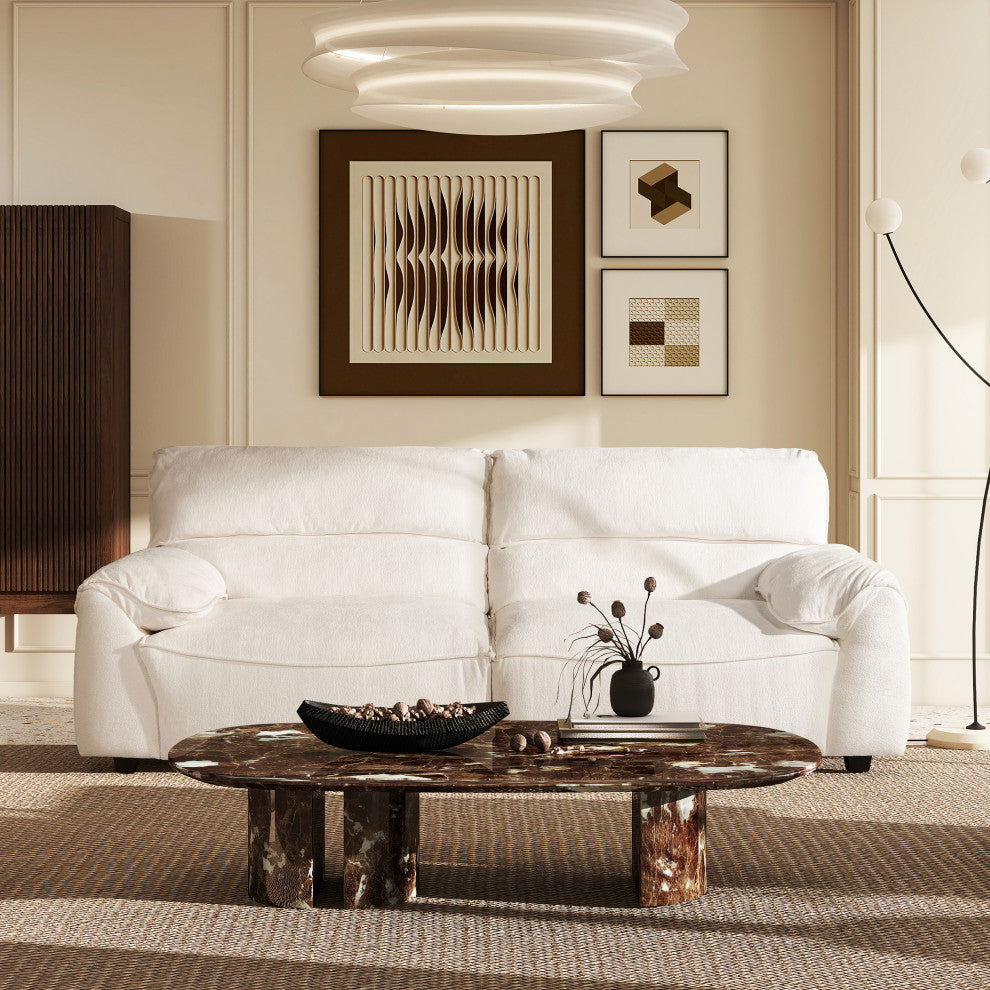Sorrento 90.5" Modular 2-Piece Pillow Arm Sofa, Creme Off-White Chenille