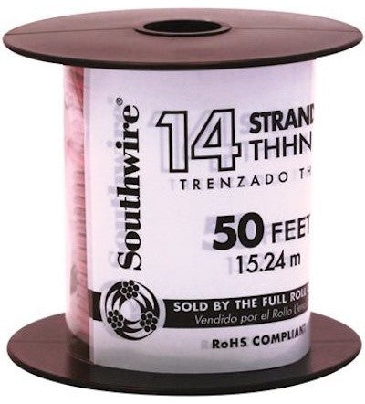 Southwire® 22957551 Type THHN 14 Stranded Building Wire, Red, 50'