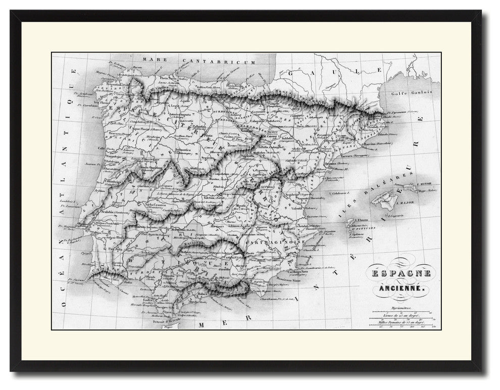 Spain Portugal Vintage B&W Map Canvas Print, 28"x37"