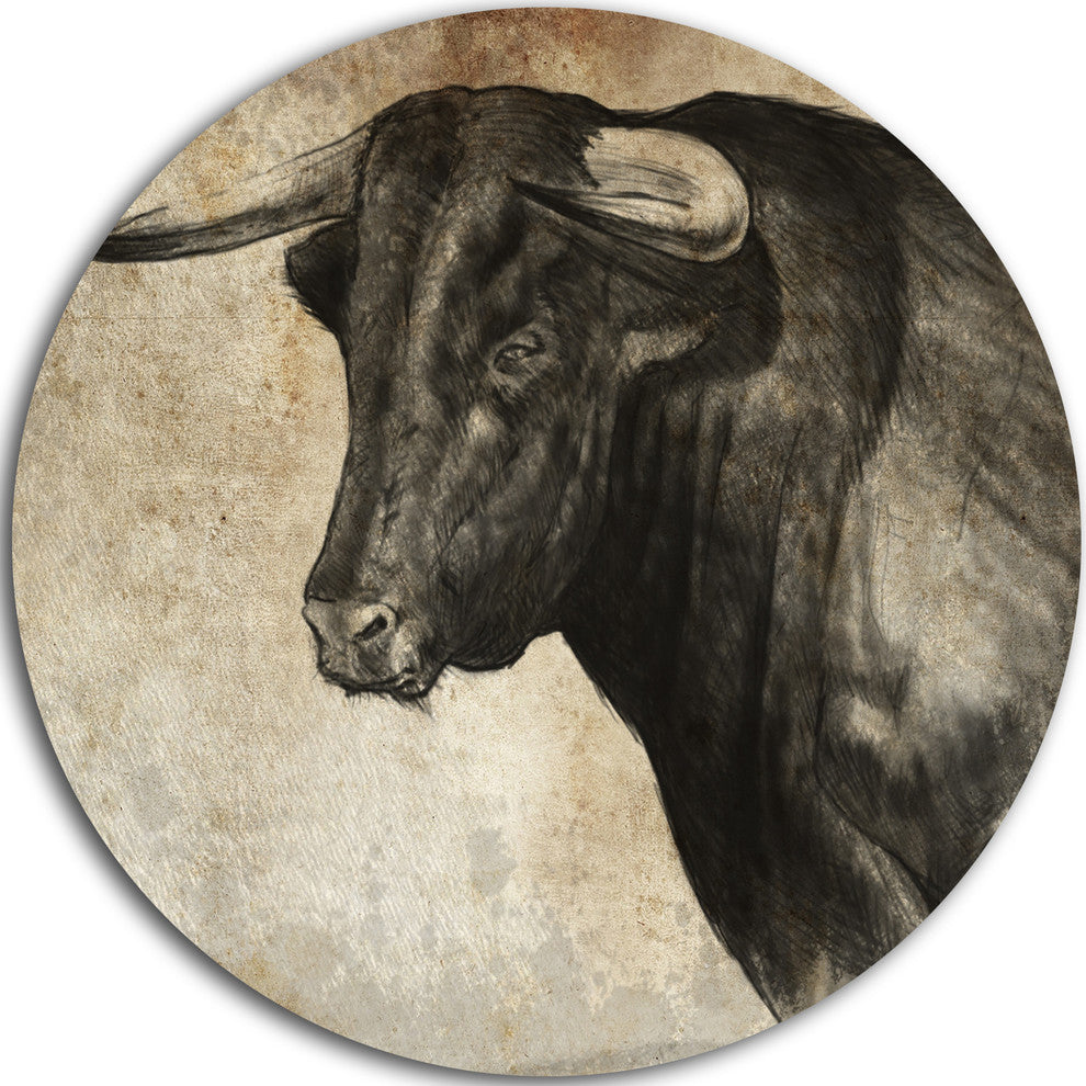 Spanish Bull Sketch, Animal Round Metal Wall Art, 36"