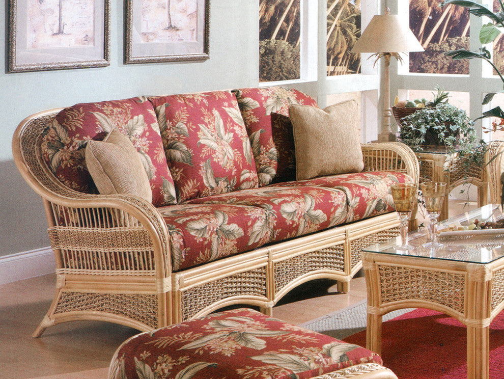 The Spice Islands Collection is the premier star and stands out as the most popular choice among sunroom wicker afficionados. Spice Island Sofa In Natural With Cushions. Please refer to fourth image for fabric swatch. Toss pillow not included.