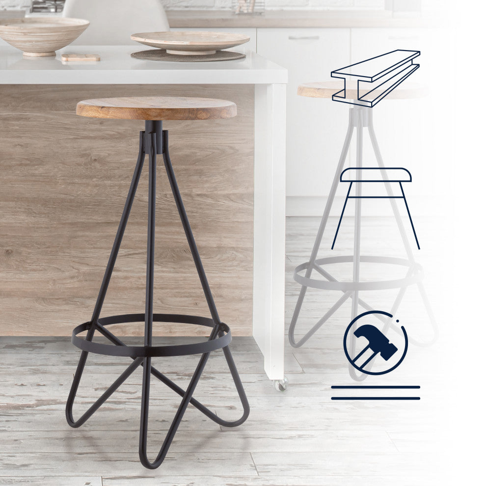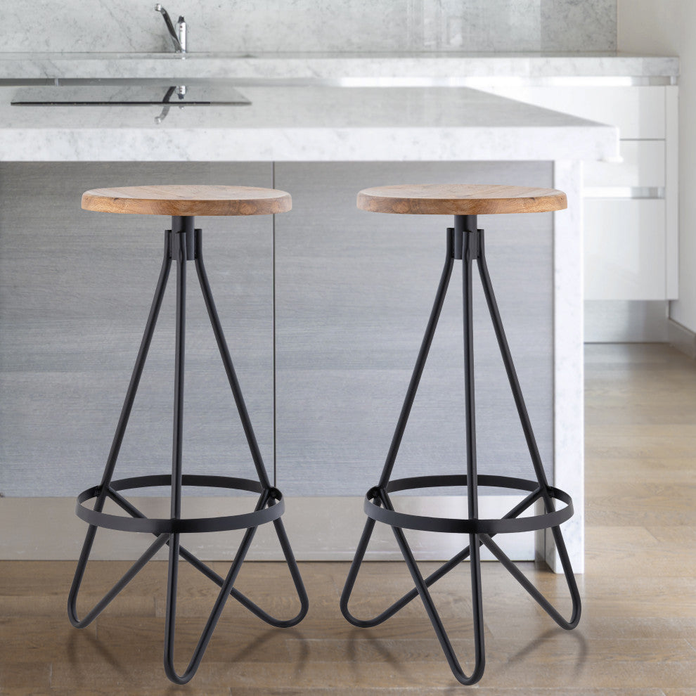 Spiroa Modern Industrial Metal Backless Circular Bar Stool, Brown