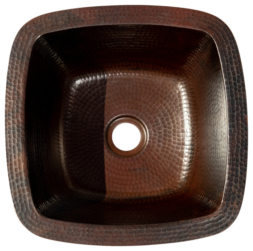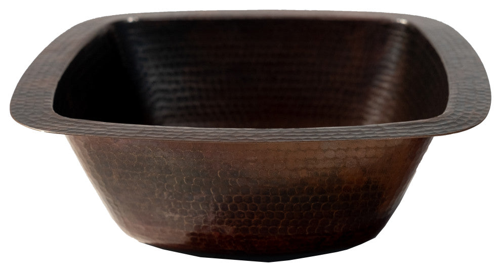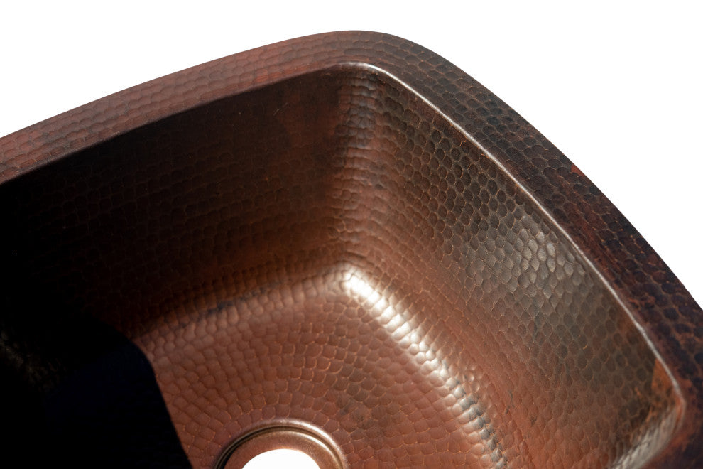 Square Sink12" x 12" x 6" Drain Hole 1.5"Handmade 100% copperOil rubbed finishMade in Mexico Tesoro Tarasco"™s hammered copper sinks are made from recycled copper. The patina is naturally made by a fire processing, and changes overtime. When you buy a Copper Craft from our shop, you''re not only getting a unique handmade copper craft, at the same time you''re supporting an activity that has been practiced for hundreds of years. The Purepechas from the state of Michoacan, Mexico. Have been working with copper and other metals for generations and it"™s taught from father to son, so you''re not only buying a beautiful craft, you"™re purchasing an object with hundreds of years of history. THANKS FOR YOUR VISIT AND THANKS FOR HELPING TO KEEP THIS TRADITION ALIVE, BY BUYING OUR PRODUCTS.