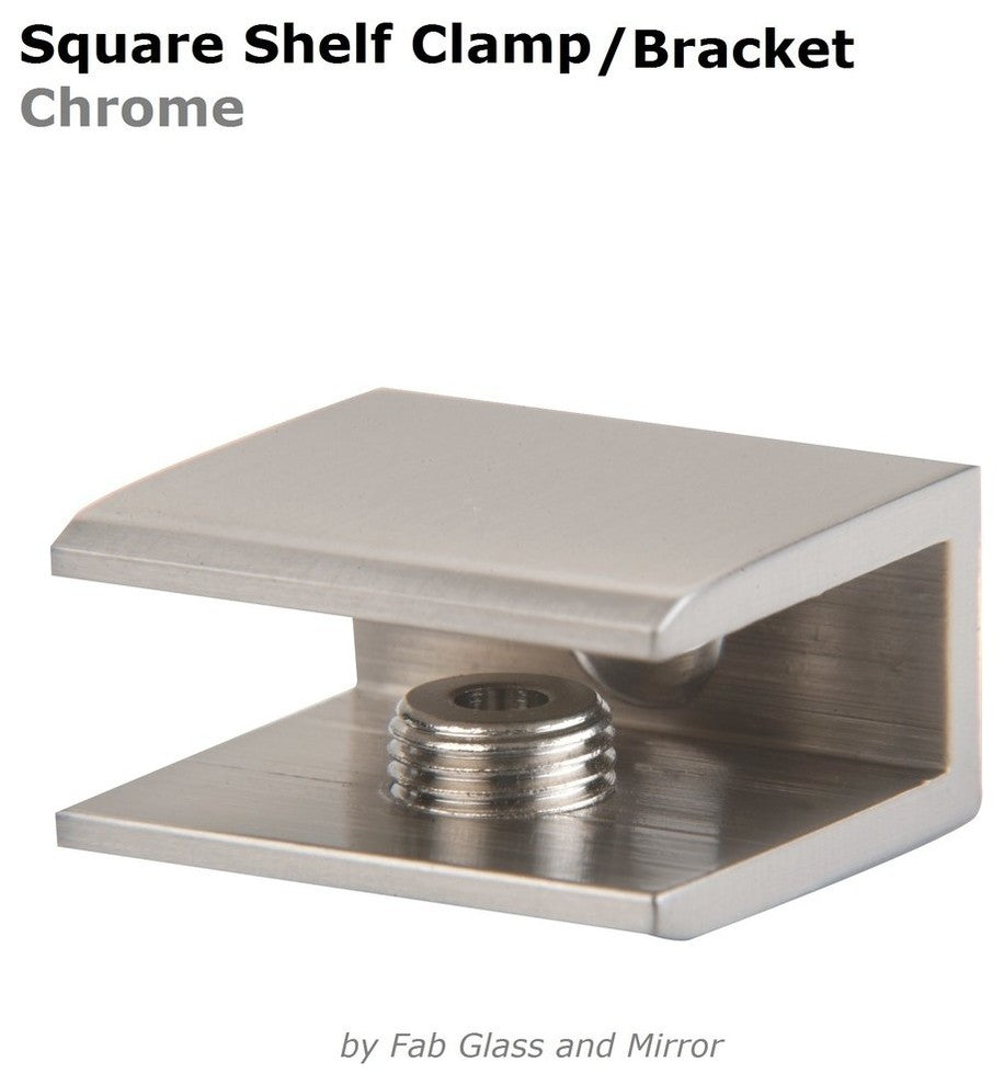 Material: Solid BrassGlass Thickness Range: 5/16 to 3/8 (8 to 10 mm)No Glass Fabrication Required (Clamps tighten using nylon tipped screws). NOTE: Maximum 5 (127 mm) shelf depth from wall recommended.