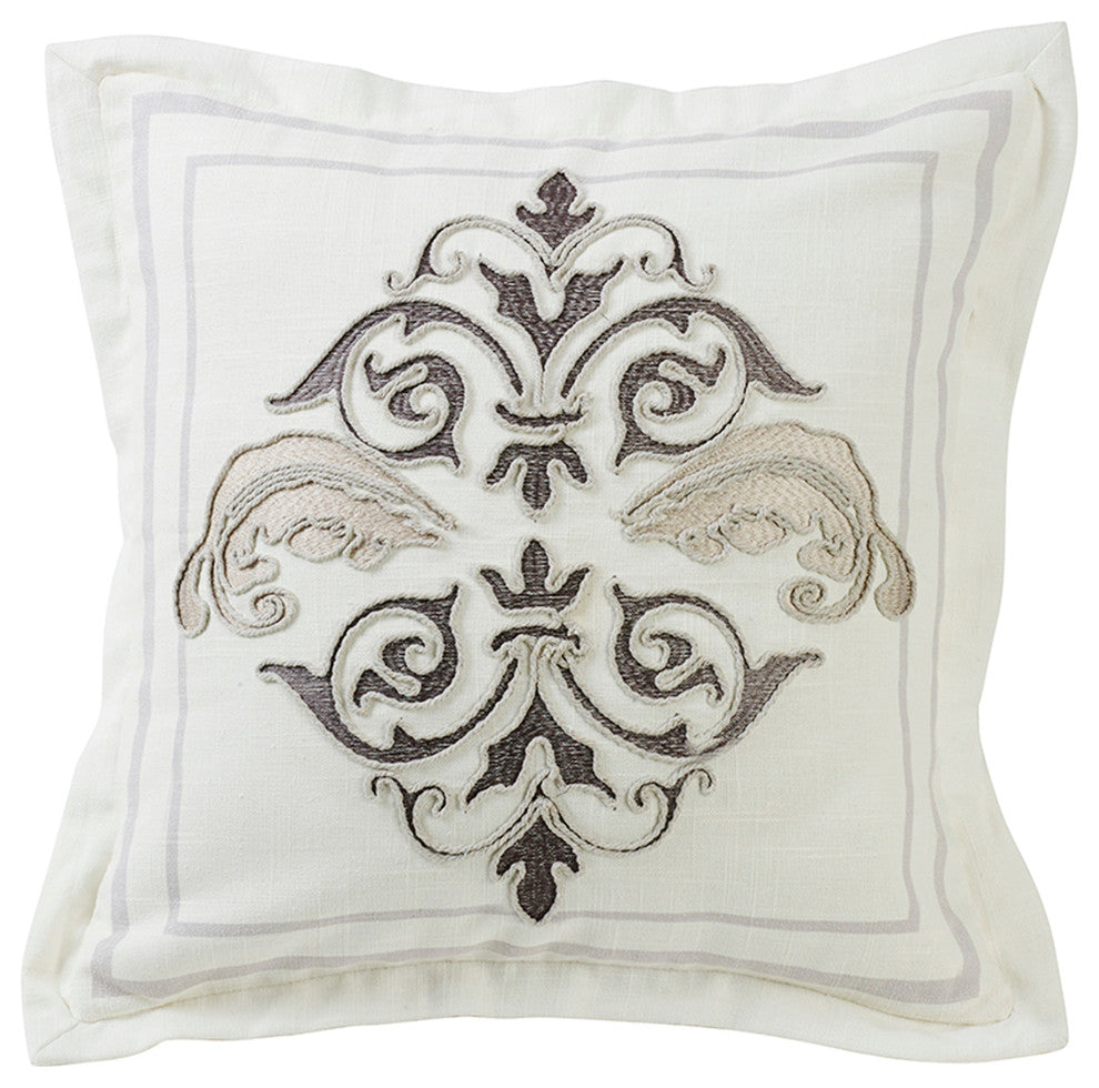 Square Outlined Embroidered Design Pillow With Flange, 18x18