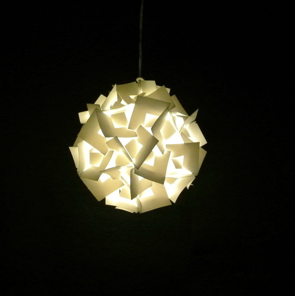 Add a beautiful soft glow to any room, patio, or outdoor area with this unique hanging pendant lamp from Akari Lanterns. This Squares Lamp measures 12 inches in diameter and is perfect for any room. This beautiful hanging light resembles a Chinese paper lantern and will improve the ambiance of any setting while creating a unique focal point. Our patented design is offered in many styles and sizes. This fully assembled lamp kit includes everything you need for easy installation: 15ft cord w/switch, LED bulb, and heavy duty mounting staples so that you can hang this lamp from the ceiling, tree branch or overhead framing.