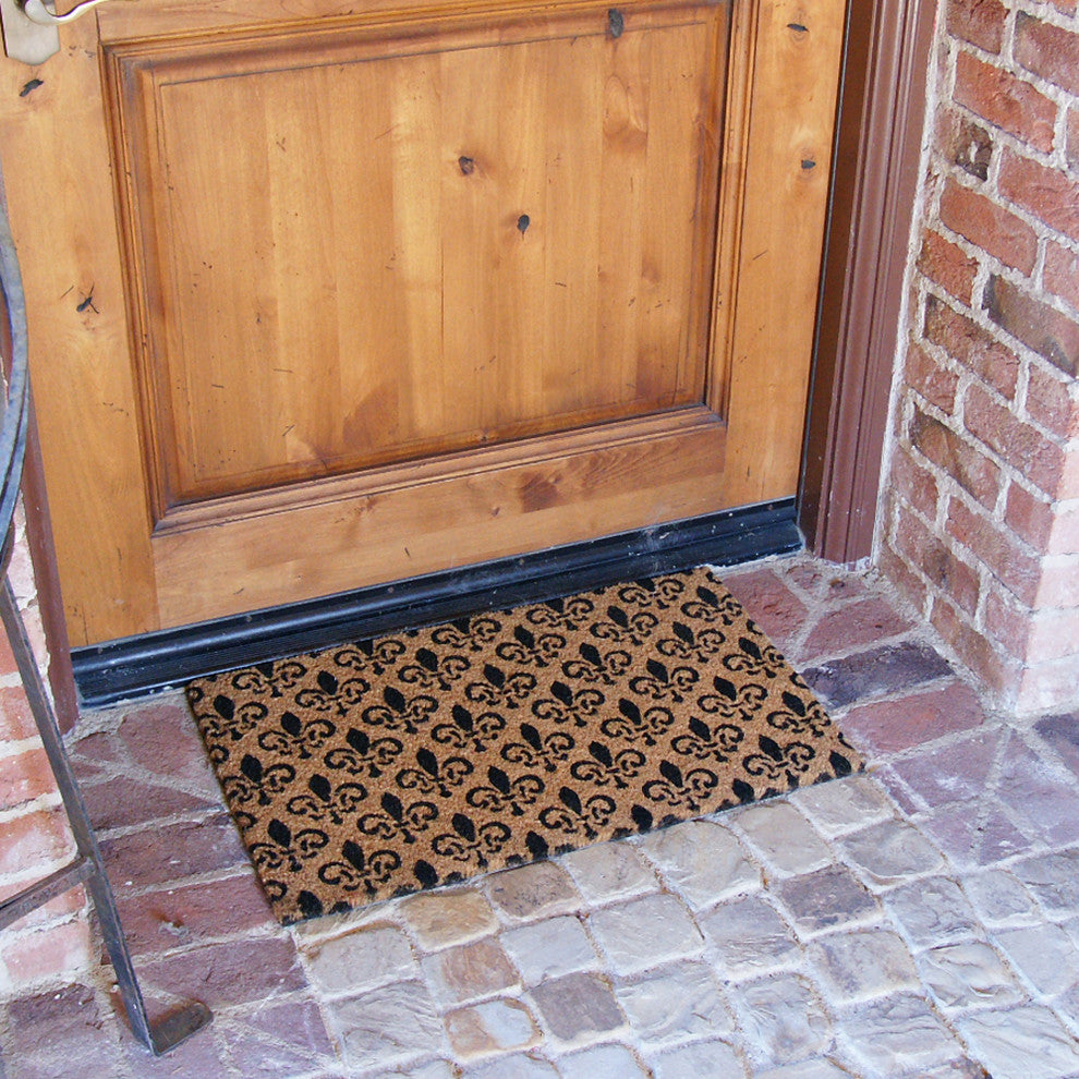 Rubber-Cal''s "St. Germaine" Fleur de Lis Door Mat is an elegantly designed surface for any front door. It is both a natural and classic look for those who wish to make an impression. This reliable coir matting contains a sophisticated pattern, is an eco-friendly alternative, and can withstand the pressures of daily wear and tear. Lined with a PVC backing, these French door mats have a charming pattern of fleurs de lis across the surface. With a naturally-colored brown coir background, this product will provide a cultural appeal to your doorstep. Not only are these welcome mats branded by the French emblem, but they are also made of natural coir fibers derived from the husks of coconuts. This fibrous material is produced through an eco-conscious process of husking and extracting. It has very little impact on the environment as a lot of this is done by hand. The natural color of the coconut fibers is allowed to come through in the backdrop of this coir matting. In addition to their eco-friendly production, these welcome mats are extremely reliable due to the durability of the fibrous material. Acting as a scraping surface, excess particles and liquids from incoming foot traffic are attacked before they enter your home. This product can endure through the wear of feet and weather with mold and mildew resistance. The "St. Germaine" Fleur de Lis Door Mat is able to serve multiple purposes at your front door. It''s an attractive decoration and an environmentally friendly surface that can provide scraping action that will endure through all seasons. It will fit perfectly at your front door and is available in two ideal sized at a thickness of 5/8-inch. For a culturally sound and sophisticated look, get one of our French door mats today!