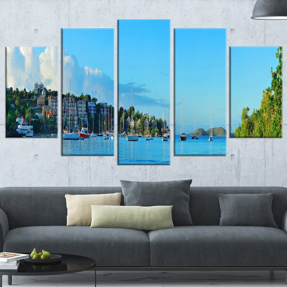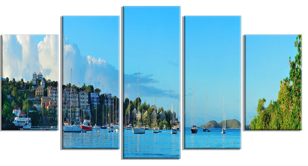 "St John Bay Panoramic View" Seashore Canvas Art, 5 Panels, 60"x32"