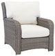 Timeless appeal and clean, modern aesthetic come together in the perfectly proportioned Saint Tropez collection. The smooth, flat-weave synthetic wicker is woven over durable, rustproof aluminum framing. Fabric swatch is shown in the second image.