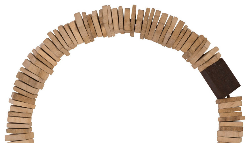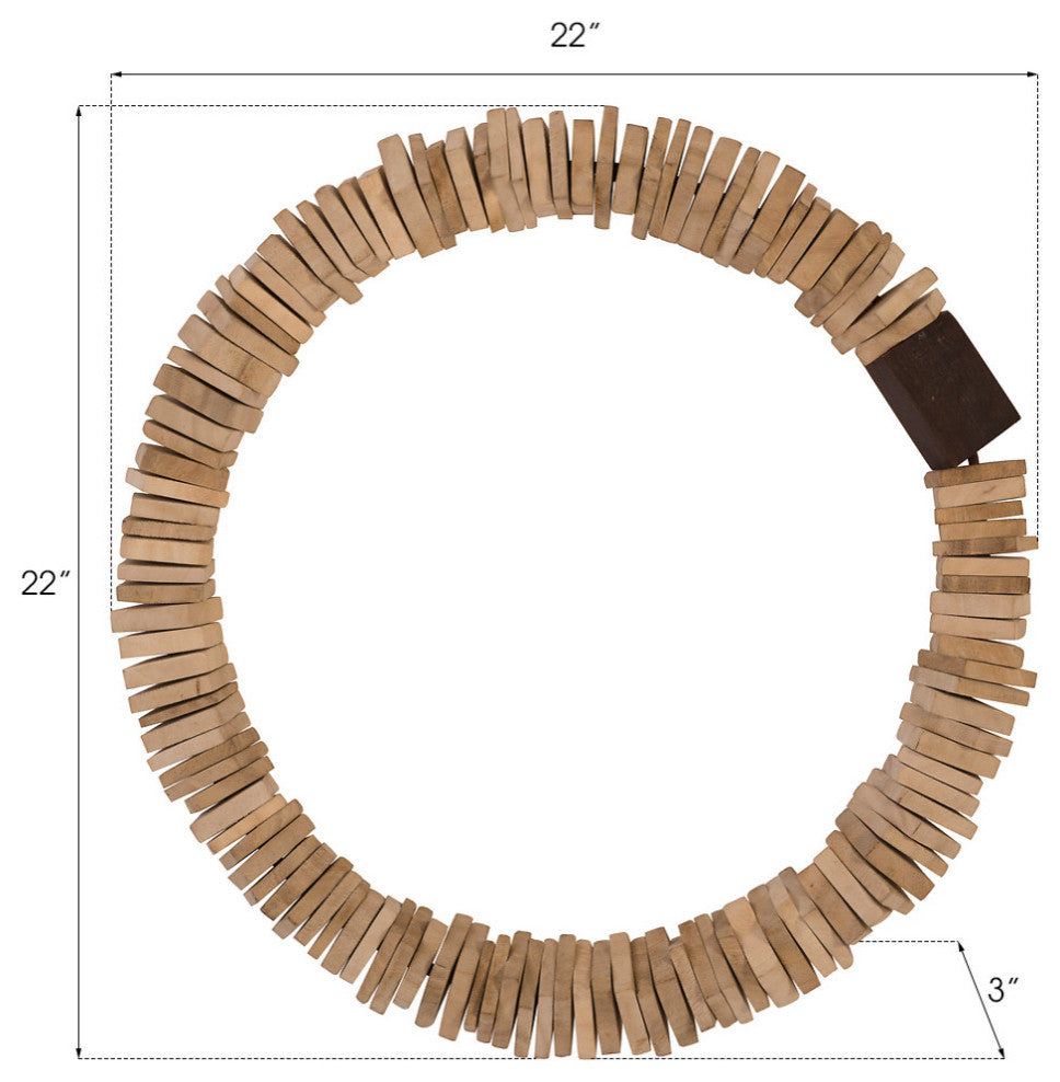 A stunning wall sculpture with a playfulness and versatility that makes this a no brainer. Did you know they are made from the end cuts of our furniture production? Each slice is cut into a square, sanded smooth and strung along a metal circle. Also available as 29399.