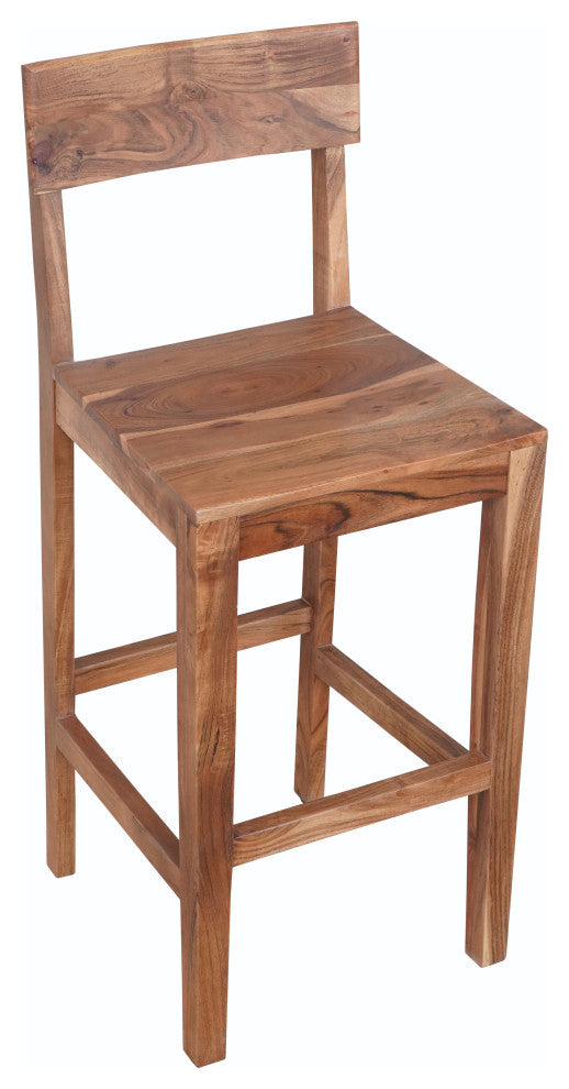 Introduce a touch of contemporary sophistication to your dining area with this solid wood chair. Its sleek silhouette, featuring a minimal slat backrest and a gently contoured seat, brings modern flair to any dining table. Hand-crafted from robust acacia wood and enhanced with crossbar supports, this chair offers both strength and stability for a comfortable and enjoyable dining experience.