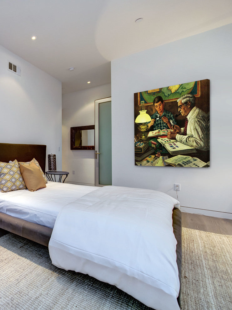 "Stamp Collecting" Painting Print on Canvas by Stevan Dohanos
