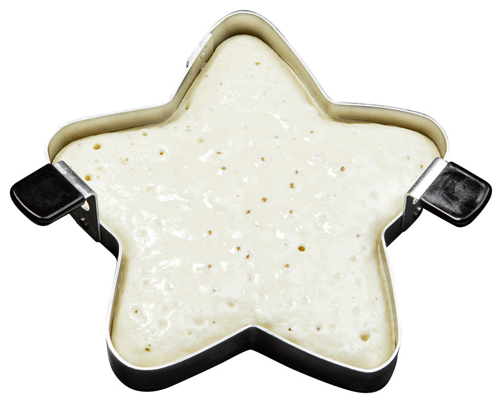 Star Shape-Its Food Forms are manufactured from an aircraft aluminum alloy that has been specially processed to provide years of durable use without losing its shape. These forms work great for shaping any kind of shapeable food (i.e. pancakes, cakes, cookies, gelatin, ice cream, marshmallow treats, brownies and more.) Each form is easy to clean, dishwasher safe, oven safe to 350 degrees and will not rust. All Shape-Its Forms are equipped with folding handles to make storing easy.